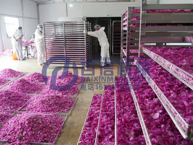 該項目位于山東平陰縣,為玫瑰花烘干。項目采用一臺6P的烘干除濕一體機,一次可以烘干新鮮玫瑰花1200斤,烘干時間約為35小時,整個烘干過程所消耗的電能是約210度電,電費按1.0元/度計算,即210元。在烘干成本上比柴油鍋爐烘干房節(jié)能50%以上,比電熱烘干房節(jié)能40%以上,比煤鍋爐節(jié)能35%以上。在烘干的過程中,提取玫瑰花細胞液,1000斤的新鮮玫瑰花朵可以提取300斤左右的細胞液。